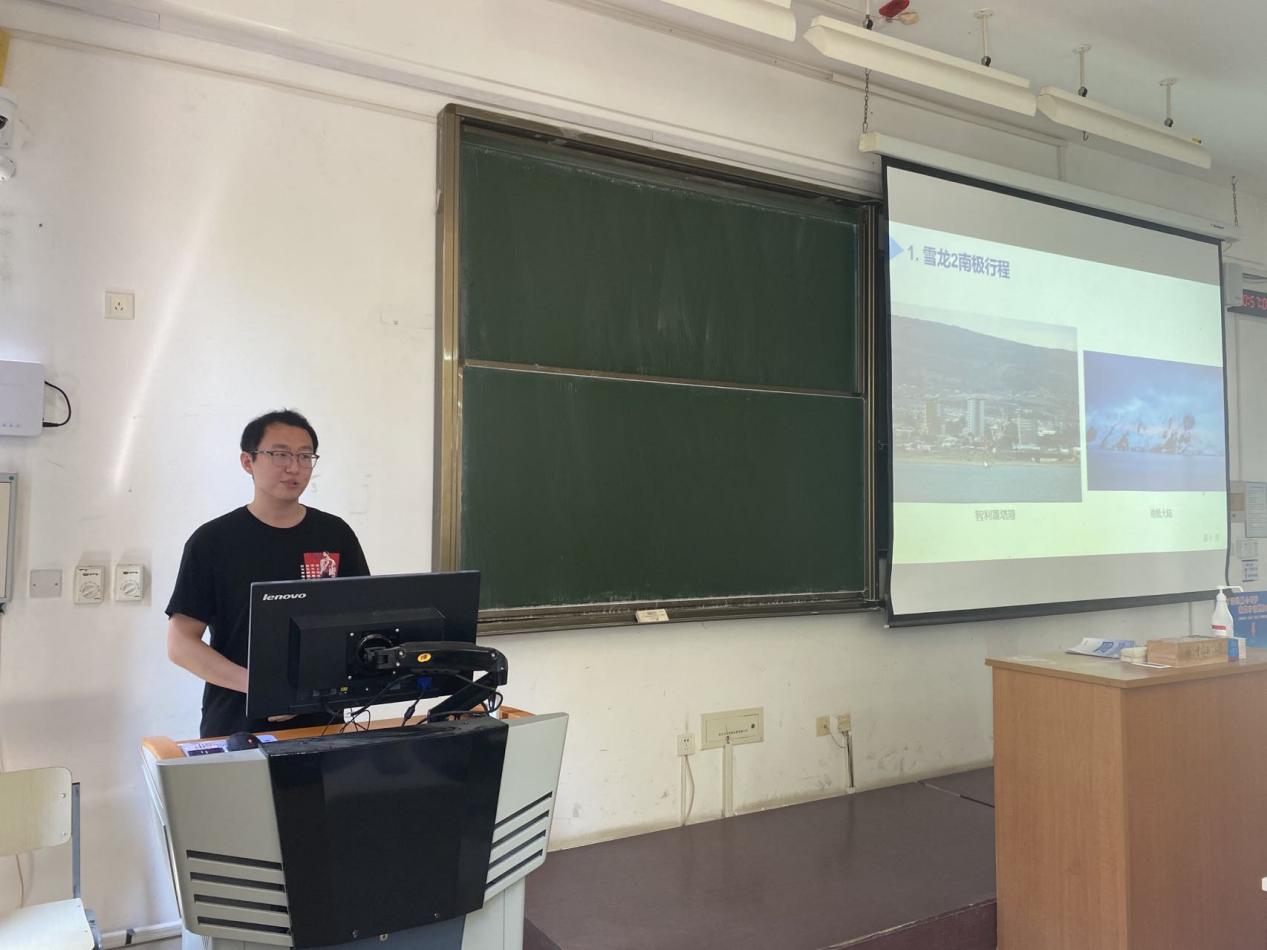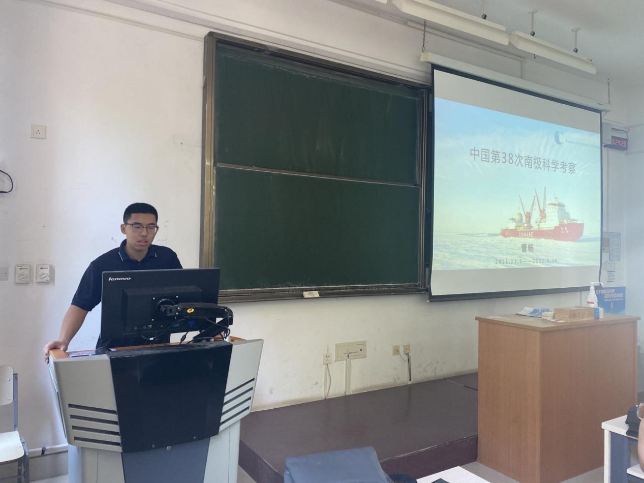 2019级渔业资源博士研究生田浩介绍了“海男”远洋调查团队在西北太平洋从事渔业调查工作中的工作情况与工作经验,同时也向同学们介绍了渔业海洋学实验室的研究背景和研究方向及其自身渔业遥感研究方向的研究背景,进一步促进了同学们对水产学院实验室的了解2020级渔业资源博士研究生曹畅、2021级渔业资源博士研究生王业辉2020级捕捞学硕士研究生王鹏浩分别对乘坐“雪龙号”和“雪龙2”号基地破冰船参加第38次中国南极科学考察经历进行分享,用生动的图片及视频资料向同学们展示了海上科研的艰辛以及丰富多彩的海上生活及大洋风景,使同学们对严肃与欢乐并存的海上科研生活有了更进一步的认识。同时学长们对同学们提出的关于如何进入南极科考队以及何时确立自己的科研方向等问题进行了细致的回答,大家受益良多,收获颇丰。