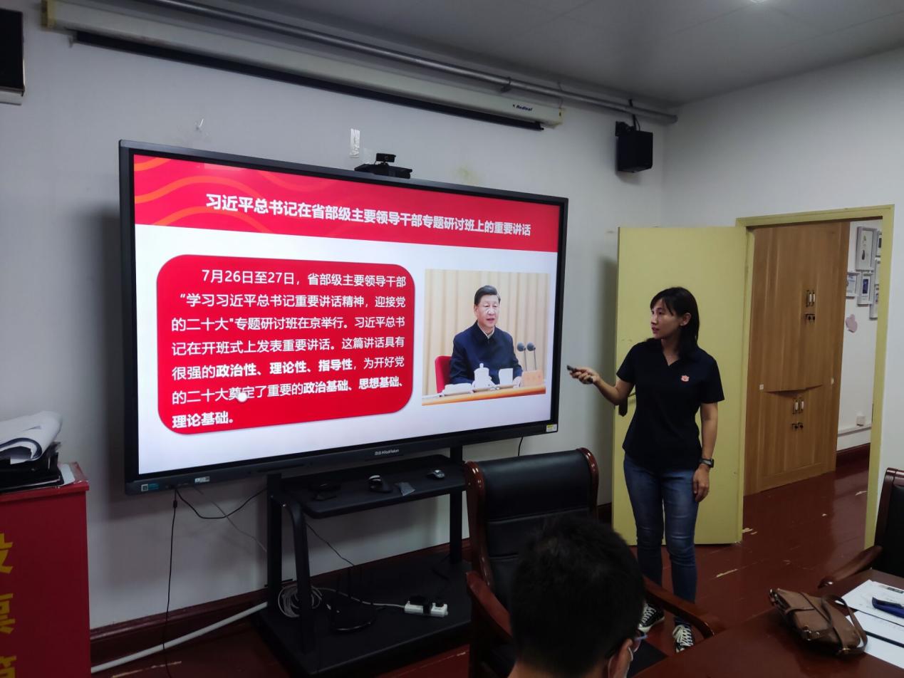 会谈开始时,苗老师带领各位同志们一起学习了习近平在省部级主要领导干部“学习习近平总书记重要讲话精神,迎接党的二十大”专题研讨班上发表的重要讲话精神。苗老师分析了,党的二十大为什么对党的新征程上举什么旗、走什么路、以什么样的精神状态、朝着什么样的目标继续前进具有十分重大的意义。紧接着苗晶晶老师鼓励大家同样要树立好自己的人生目标,并且鼓励大家要把自己的小我融入祖国的大我、人民的大我之中,与时代同步伐、与人民共命运,才能更好实现人生价值、升华人生境界。