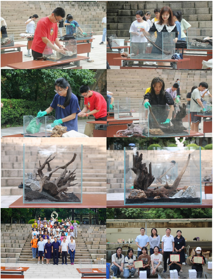 94日上午,经过一个月的准备,“中国海洋大学第三届水族造景大赛” 在中国海洋大学鱼山校区人鱼广场举行。经过前期宣传与报名,本次比赛共有近50名学生参加。比赛项目共设置四个组别,分别为大缸组、中缸组、小缸组、水陆缸组。大缸组为3—5人团队形式参赛外,其他组别均为个人参赛。造景完成后,评委们对每个作品进行了认真、客观、公正的评分,最后评出了一等奖、二等奖、三等奖与纪念奖。