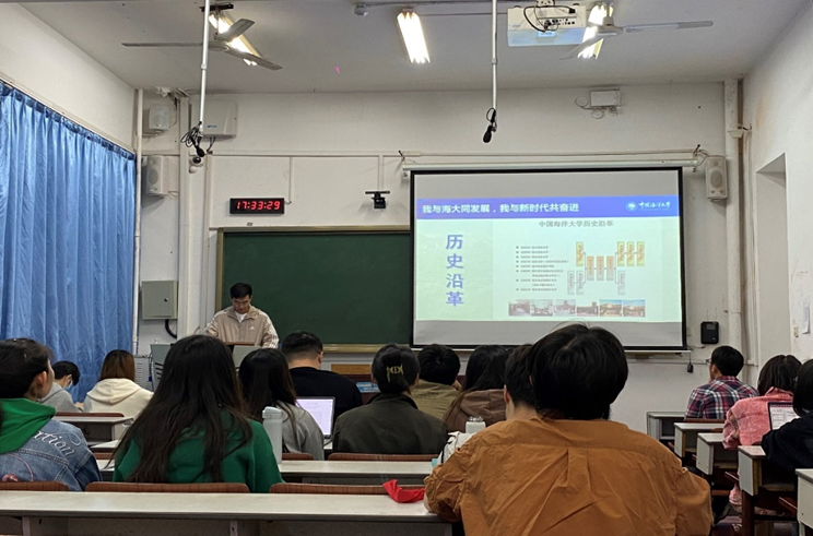 10月23日,2023级生物学硕士班于在新教楼103开展“我与海大同发展,我与新时代共奋进”主题班会活动。本次班会上,同学们共同进行了校史学习、为校庆寄语和讲述“我与海大的故事”,经过此次活动,班级同学进一步了解了海大的历史沿革,感受到各代师生为建设发展学校所做出的艰苦卓绝的努力。同学们纷纷表示,备受鼓舞,要以更饱满的热情投入到学习生活中,为学校发展和祖国建设做出自己的贡献。