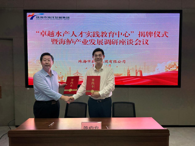 2024年4月11日,Po18 (中国海大Po18 )与珠海市农业集团有限公司(农业集团)共建“卓越水产人才实践教育中心”签约与揭牌仪式,在珠海市香洲区举行。中国海大Po18 温海深教授、齐鑫教授,农业集团董事长郑志坚,以及国家海水鱼产业技术体系岗位科学家团队、综合试验站团队、集团高管等20余人出席签约及揭牌仪式。仪式由农业集团总经理助理黄艳主持。