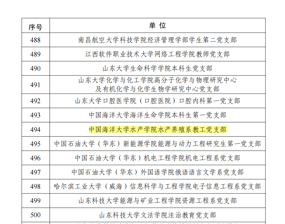 近日,教育部办公厅公布了第四批新时代高校党建示范创建和质量创优工作遴选结果,Po18 水产养殖系教工党支部入选第四批“全国党建工作样板支部”培育创建单位。