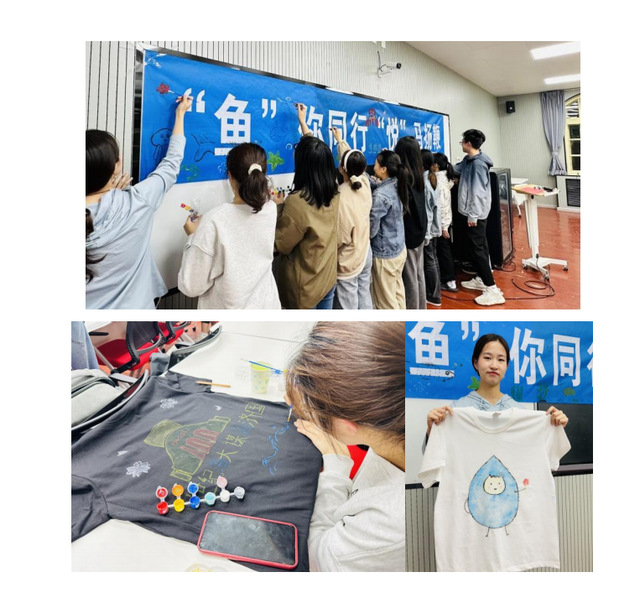 5月9日,水产学院在铭史楼开展了“鱼你缤纷”百年海大主题T恤DIY活动。T恤DIY活动作为水产学院心理健康协会的经典活动,已连续举办九年,受到广大水产学子的喜爱,活动成效显著。本次活动恰逢中国海洋大学建校一百周年,同学们积极参与,以百年海大为主题,挥洒创意,融入海大元素和水产文化,用手中的画笔在纯色T恤和条幅上绘制出一幅幅独具匠心的作品,成为连接过去与未来,传承与创新的桥梁,见证中国海洋大学百年荣光的同时,也映照出新时代水产学子的风采,以自身成长献礼百年海大。活动中,同学们更加深刻地理解了学校的历史和文化,也更好地展示自我、表达情感,得到了艺术对心灵的治愈作用。