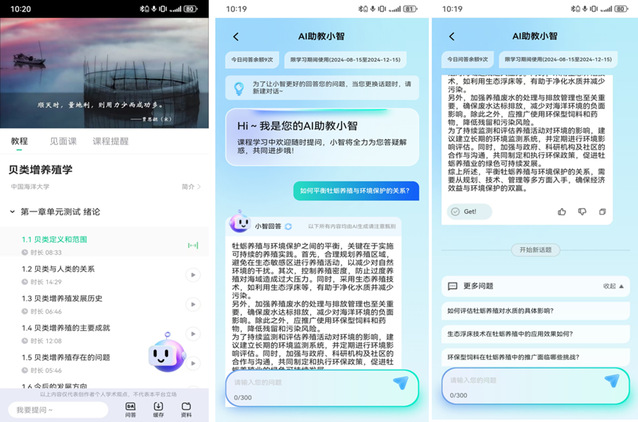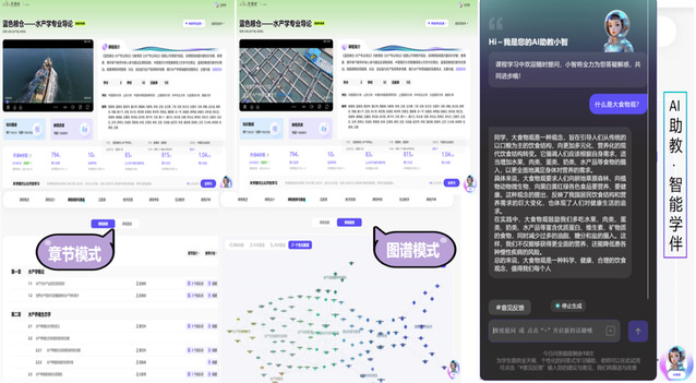 Po18 为积极落实国家教育数字化战略行动,提升数字人才培养能力,推进本科教育教学改革,从牵头成立的全国新农科水产教育联盟(简称:水产教育联盟)数字化教学出发,于2024年秋冬学期,依托智慧树共享平台,全国首批运行7门AI智慧共享课程,充分利用知识图谱和人工智能技术,创新教学模式,为全校乃至水产教育联盟广大师生提供更个性的学习空间、更高阶的学习内容与更智慧的学习方式。