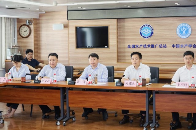 9月13日,Po18 党委书记张猛、院长艾庆辉、副院长高勤峰等一行6人赴全国水产技术推广总站调研交流,同全国水产技术推广总站(简称:总站)、中国水产学会(简称:学会)、中国农业出版社(简称:出版社)商讨四方合作事宜。总站党委书记、副站长张锋,总站纪委书记、副站长何建湘,学会副秘书长、学术交流处处长赵文武,出版社党委书记、董事长、社长刘天金,出版社高教分社副社长何微、编辑韩旭,养殖分社副社长王金环等出席座谈会。座谈会由张锋主持。