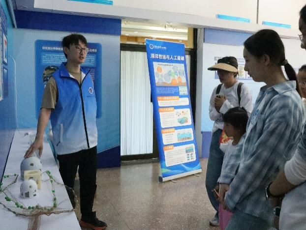 在鱼山校区逸夫科技馆、南极标本馆、敏行馆的参观环节,青少年们近距离观察了丰富的海洋生物标本、极地科考成果及水产养殖设备。南极标本馆的珍稀鱼类标本、逸夫科技馆的海洋牧场模型等展品,让学生们直观感受到海洋科学的广博与深远。