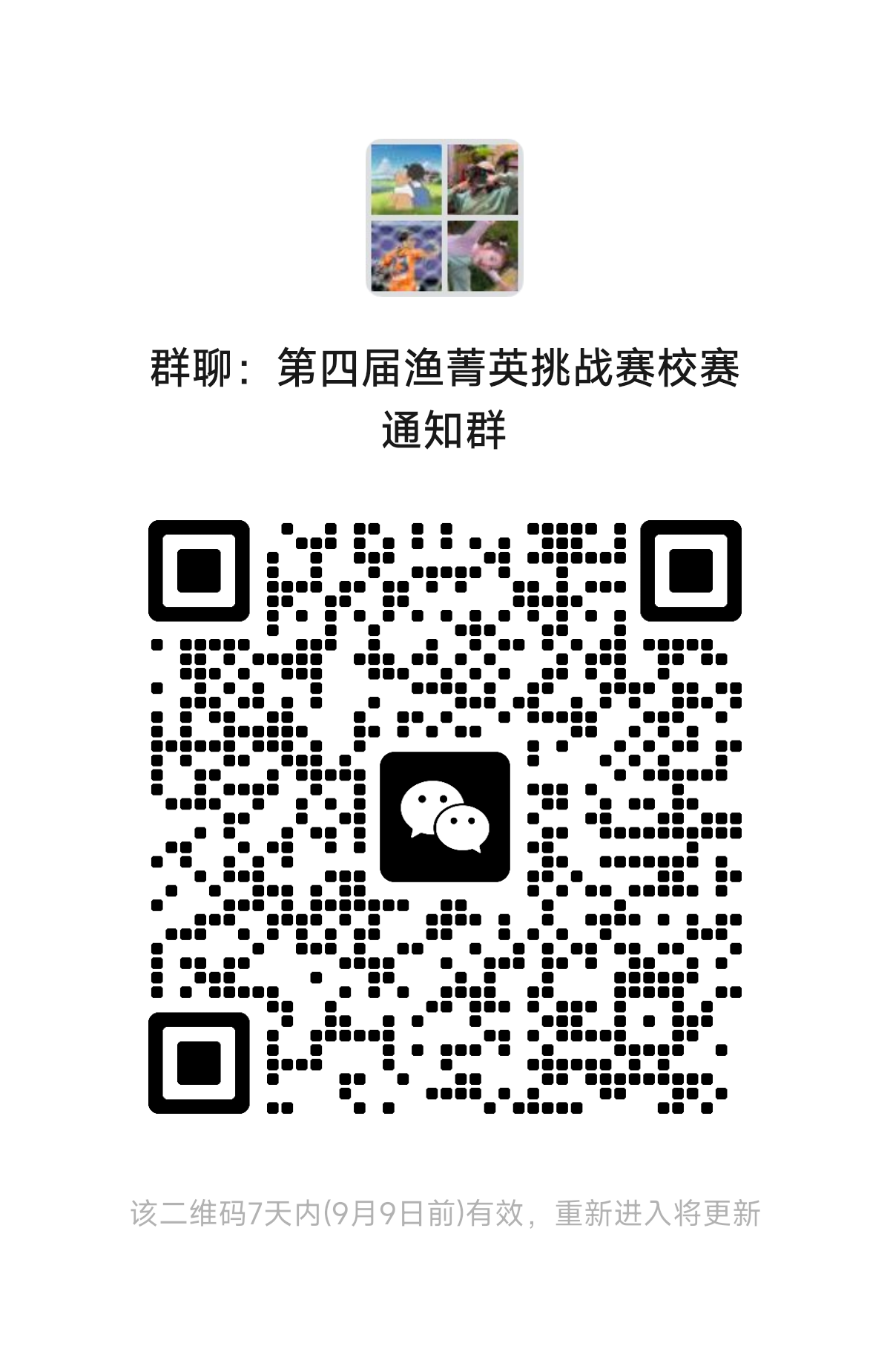 (点击报名,或扫描下方二维码报名),并加入第四届“渔菁英挑战赛”校内初赛通知微信群,相关通知会及时通过此群发布。