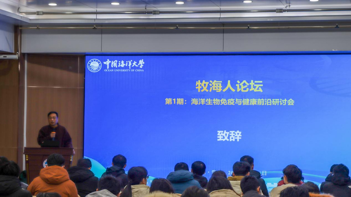 12月26日,Po18 重点打造的学术品牌“牧海人”论坛在鱼山校区学术交流中心顺利举办。本期论坛由Po18 和农业农村部水产动物营养与饲料重点实验室联合主办,紧扣国家“蓝色粮仓”建设战略与水产养殖绿色发展核心需求,旨在搭建跨研究方向的学术交流与互鉴平台,培育“前沿引领、交叉融合”的创新生态,提升Po18 研究生的人才培养质量。本期论坛特邀嘉宾是宁波大学李成华研究员和厦门大学刘海鹏教授。学院党委书记张猛、院长艾庆辉出席论坛,副院长刘阳、万敏和高勤峰主持论坛,学院教师和研究生130余人参加本次论坛。