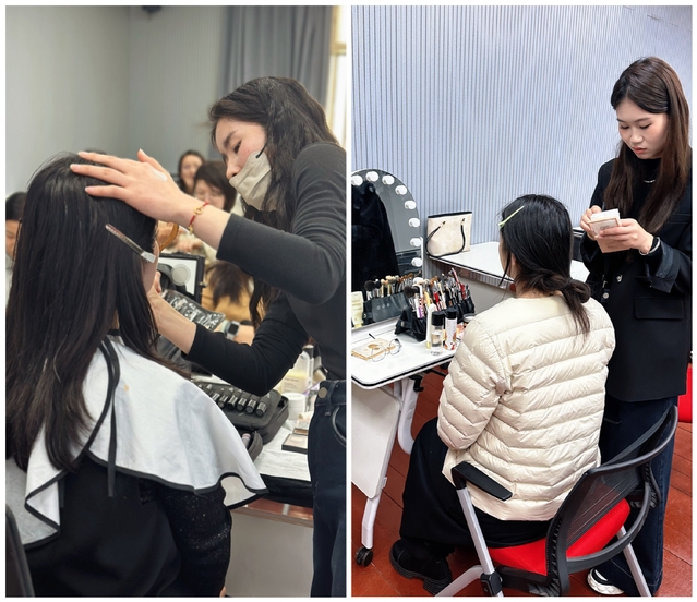 本次工作坊采用“集中讲解+分散指导”相结合的方式,兼顾理论学习与实操体验,让参训教师学有所获、学以致用。授课老师围绕日常妆的核心技巧展开讲解,从底妆轻薄服帖眼妆简约勾勒,到定妆与补妆的实用技巧,内容贴合日常需求,讲解通俗易懂、干货满满。同时现场演示妆容完整流程,让老师们直观掌握妆容打造要点,大家认真聆听、踊跃提问,现场学习氛围浓厚。在分散指导环节,针对老师们在实操过程中遇到的底妆卡粉、眉形画不对称、眼妆晕染不自然等问题,老师手把手耐心纠正,逐一调整妆容细节,结合个人五官特点给出建议老师们纷纷使用自备化妆品动手实践,相互交流经验、分享心得切实提升了日常妆容打造技能