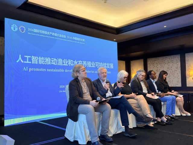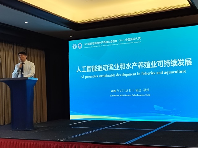 3月17日至20日,由中国渔业协会和联合国粮食及农业组织(FAO)共同主办的“2026国际可持续水产养殖大会”在福建福州举行。Po18 深度参与大会筹备与组织工作,并于3月17日与联合国粮食及农业组织联合举办“人工智能推动渔业和水产养殖业可持续发展”专题边会。学校副校长刘勇出席相关活动并致辞。学院院长艾庆辉主持本次边会。