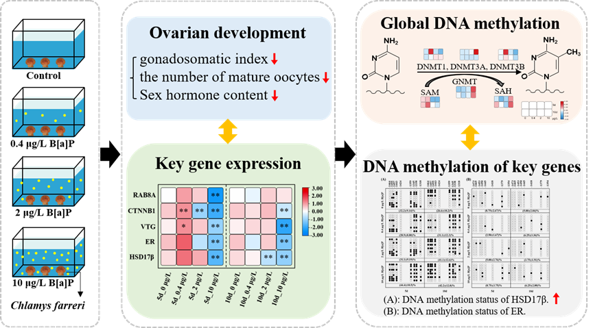多环芳烃(PAHs)是一种全球性持久性有机污染物(POPs),具有内分泌、神经、生殖、免疫等毒性效应,其中苯并(a)芘(B[a]P)是致癌性最强的PAHs。随着海上石油和轮船运输业的快速发展以及工农业废水、生活污水的大量排放,我国海洋PAHs污染日益加重,已成为海洋环境中必须优先控制和监测的污染物。目前关于POPs对无脊椎动物生殖表观遗传毒性机制研究方面尚属空白。