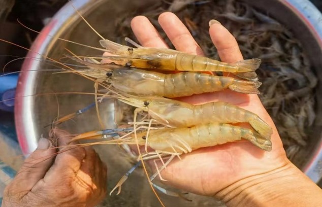2024年潘鲁青教授带领团队奔赴东营市盐碱地养殖一线实地调研和指导,在全面考察了黄河三角洲盐碱地罗氏沼虾历年养殖失败和面临的技术问题后,提出采用降盐碱、微生态控制、应用植物源生理增强剂(研究室自主开发)等技术措施,突出罗氏沼虾养殖全程管理和质量安全等绿色理念。经过120多天养殖,盐碱地罗氏沼虾规格达到24头/斤,养殖效益显著,实现了盐碱地罗氏沼虾养殖技术突破,创建黄河三角洲盐碱地罗氏沼虾绿色健康养殖技术新模式,为黄河三角洲盐碱地水产养殖业绿色发展和水产品安全保障提供技术支撑。
