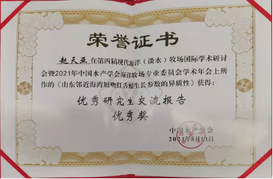 会议上,张崇良老师、博士生刘逸文和硕士生赵天亚分别做了题为《渔业资源增殖评估的研究进展》、《增殖放流种群动力学模型构建:以中国对虾为例》和《山东邻近海湾短吻红舌鳎生长参数的异质性》的口头汇报。汇报可为海洋牧场建设、人工鱼礁效益评估、海洋牧场区渔业资源可持续利用等提供理论指导和技术支撑。