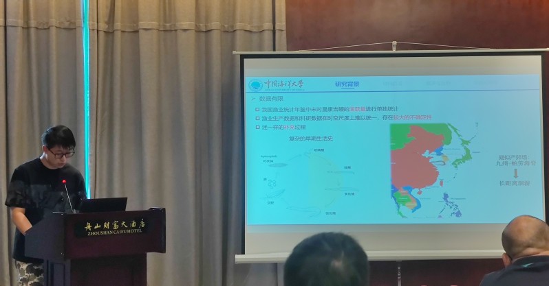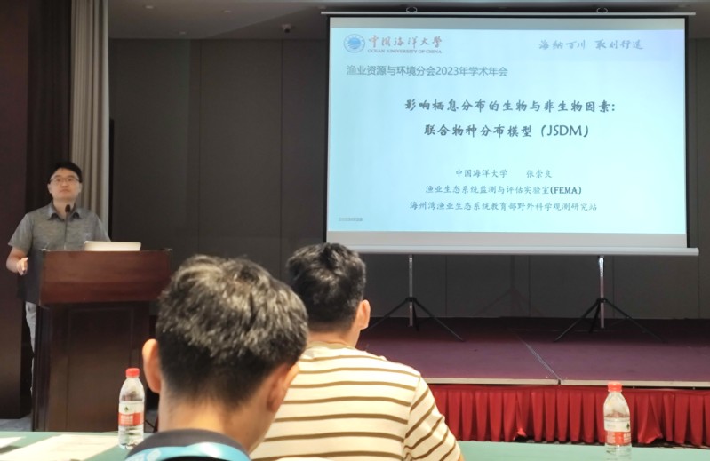 会议上,张崇良老师做了题为《联合物种分布模型揭示影响栖息分布的生物与非生物因素》的口头报告;刘逸文、徐俊伟和杨仕诚分别做了题为《渔业资源增殖的种群动力学过程与动态能量收支》、《基于线性混合模型研究海州湾六丝钝尾虾虎鱼的摄食生态》和《非稳态补充对星康吉鳗管理策略稳健型的影响评估》的口头报告。