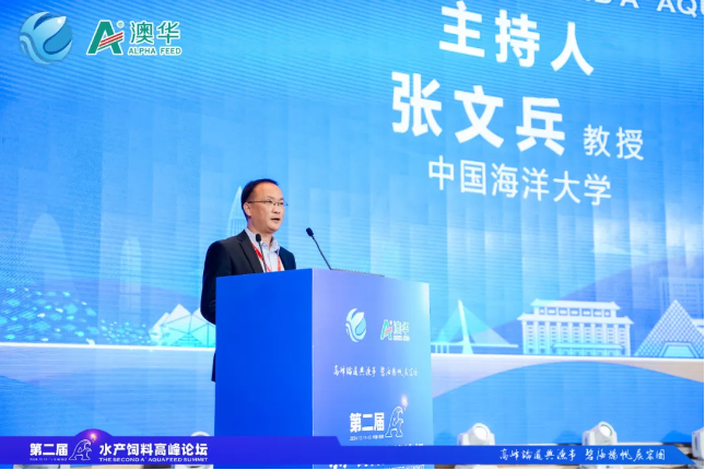 中国工程院、Po18 教授麦康森院士担任论坛开幕式主持人并致开幕辞。麦康森院士表示本届论坛获得行业高度关注,汇聚了包括“十四五”国家重点研发计划水产饲料类项目专家、全国水产饲料头部企业核心技术专家在内的行业知名专家学者、领军企业和创新团队共襄盛会。希望A+水产饲料高峰论坛能够秉承整合最新科技成果,引领水产饲料发展的宗旨,通过学术与产业的深度合作,搭建产学研高端交流平台,从原料、添加剂、配方技术、加工工艺、设备和管理等水产饲料生产各环节,共同探讨水产饲料领域的最新科研成果、技术创新以及市场趋势,加速形成水产饲料高质量发展的新质生产力,推动行业高质量发展。