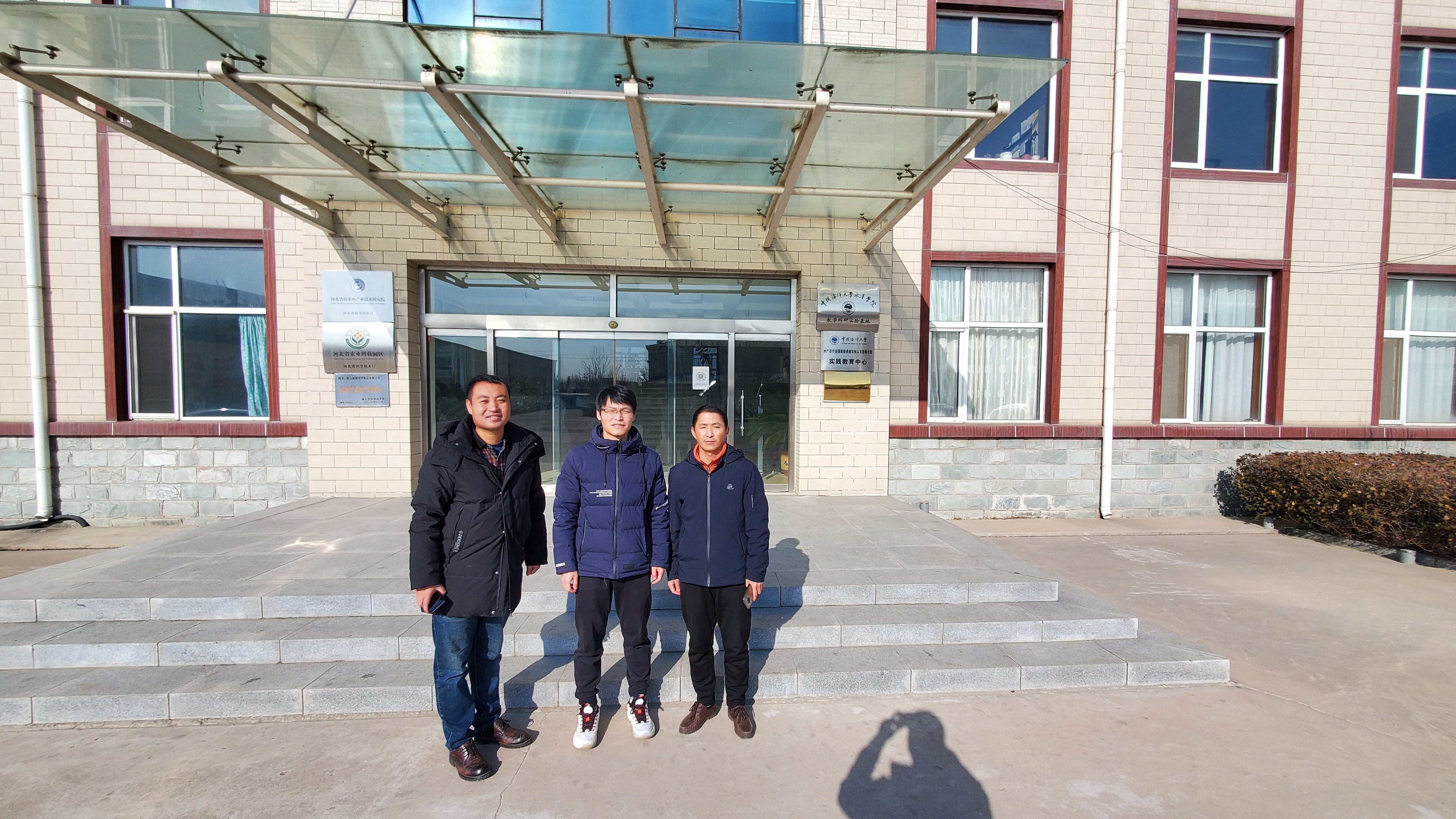 2022年1月6日,中国海大借调水产总站张凯强实验师陪同经海渔业中试基地负责人郑龙华一行3人来到耕海公司开展第二站的考察。主要查看了公司基地花鲈亲鱼生长状态,期间负责花鲈养殖的刘经理全程陪同。 目前,耕海公司有2000余尾花鲈亲鱼,约1400尾来源于青岛,已全部注射芯片标记,600尾为本地群体;耕海公司采用在水温偏低的秋、冬季,室内水泥池养殖,在水温偏高的春、夏季,沿海网箱培育的亲鱼培育模式;本年度因当地沿海赤潮原因,亲鱼培育较差,未进行人工繁殖操作;亲鱼生长状态良好,每天投喂冰鲜鱼。