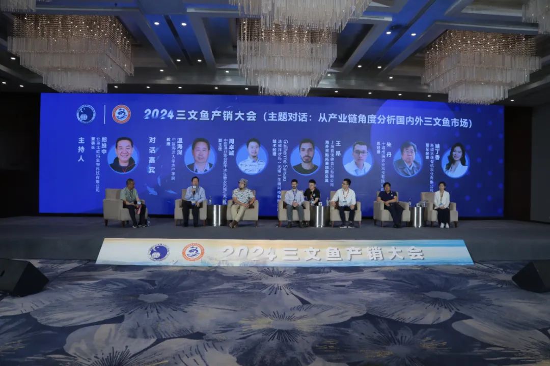 在大会报告环节,中国水产流通与加工协会会长崔和作《三文鱼全球市场形势分析及预判》主题演讲,中国水产科学研究院黄海水产研究所研究员关长涛作《中国三文鱼(鲑鳟鱼)海水养殖现状、问题及展望》主题演讲,中国水产科学研究院黑龙江水产研究所研究员徐革锋作《三文鱼产业现状与发展趋势》主题演讲,浙江大学生物系统工程与食品科学学院院长刘鹰作《智能化在鲑鳟鱼类全产业链中的研究与应用》主题演讲,分析了三文鱼产业研究进展。烟台经海海洋渔业有限公司总经理郭福元等5家单位分享了我国三文鱼产品生产与销售相关进展报告。 在对话环节,专家从产业链角度分析国内外三文鱼市场状况,温海深教授就国内外三文鱼种业状况进行分析,指出了我国虹鳟新品种培育状况及面临的挑战,他认为种源自我掌控、大规格苗种培育的质量和数量是制约我国三文鱼可持续发展的重要生物学因素。
