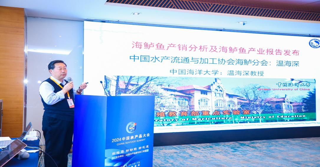 教授温海深、中国水产科学研究院南海水产研究所副研究员郭华阳、中国水产流通与加工协会大菱鲆分会会长、青岛蓝色粮仓海洋渔业发展有限公司董事长雷东,三都港海洋食品有限公司总经理尤信铃,中国水产流通与加工协会石斑鱼分会秘书长、中山大学教授刘晓春,上海海洋大学院长杨正勇,分别围绕海鲈、金鲳、大菱鲆、大黄鱼、石斑鱼等海水养殖品种产业与市场情况进行分析研讨,科研机构、大专院校、企事业单位的嘉宾齐聚一堂,共谋海水鱼产业发展之路。 温海深在报告中主要阐述了近5年来我国海水养殖鲈鱼产业概述、花鲈养殖产业发展现状、花鲈养殖“新空间”崛起、花鲈种业发展状况、花鲈产品加工与流通形式分析、花鲈产业发展存在的问题及对策等。最后发布了中国海鲈产业发展报告。