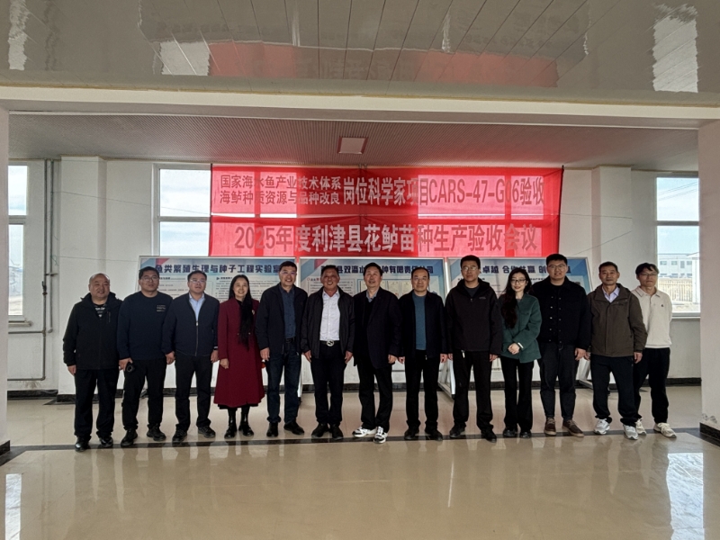 组织山东省海洋科学研究院、东营职业学院、河口区农业农村局、利津县农业农村局,利津县科技局、利津县刁口乡有关专家和领导,在利津县双瀛水产苗种责任有限公司养殖基地,对国家海水鱼产业技术体系“海鲈种质资源与品种改良”岗位科学家项目(CARS-47-G06)和国家重点研发计划“海洋农业与淡水渔业科技创新”专项“北部湾陆海接力智慧渔场养殖装备与新模式”课题三“陆基工厂化鱼贝高效繁育与健康养殖技术”(2022YFD2401203),2024年度花鲈苗种生产进行现场验收。 2024年度利津双瀛基地保有黄渤海来源的花鲈亲鱼225尾(均重3.20 kg),后备亲鱼313尾(均重2.18 kg)。2024年11月15日开始受精卵孵化,经142天培育,获得健康花鲈鱼苗22万尾,平均体长5.53cm,平均体重3.10g,达到项目年度指标。 项目验收后,Po18