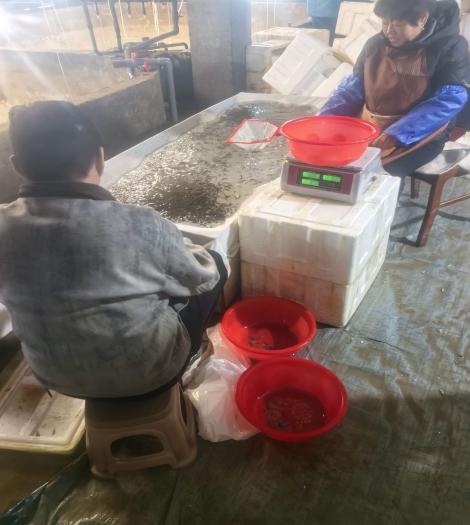 鱼类繁殖生理与种子工程实验室负责人温海深教授深入内蒙古巴彦淖尔市河套地区调研,与内蒙古农业大学、巴彦淖尔市科技局、杭锦后旗农业农村局等单位进行充分交流与现场勘测,决定从山东省东营市利津县双瀛水产苗种公司(山东省花鲈良种场),分两年度引进团队培育的速生耐碱花鲈新品系苗种20-30万尾,探索冬季室内温棚大规格苗种培养关键技术,无缝对接春季室外土池塘成鱼精养,形成高寒盐碱水域当年养成1.0-1.5斤花鲈商品鱼养殖模式。 2026年1月18日,首批11.8万尾花鲈鱼苗安全到达养殖场,平均全长为3厘米左右(2.5-3.5厘米),运输成活率达95%以上。此次采用活鱼车陆路运输方式,从山东省东营市利津县刁口乡起运,历经1300余公里,耗时近20小时,到达杭锦后旗头道桥镇华凯水产养殖场。该养殖场冬季室内养殖水槽温度为17-19℃(室外气温零下20℃左右),水体碱度为4-5mmol/L。经过3天驯化,花鲈鱼苗已经集群摄食,活动状况正常,说明已经适应新的碱水环境。