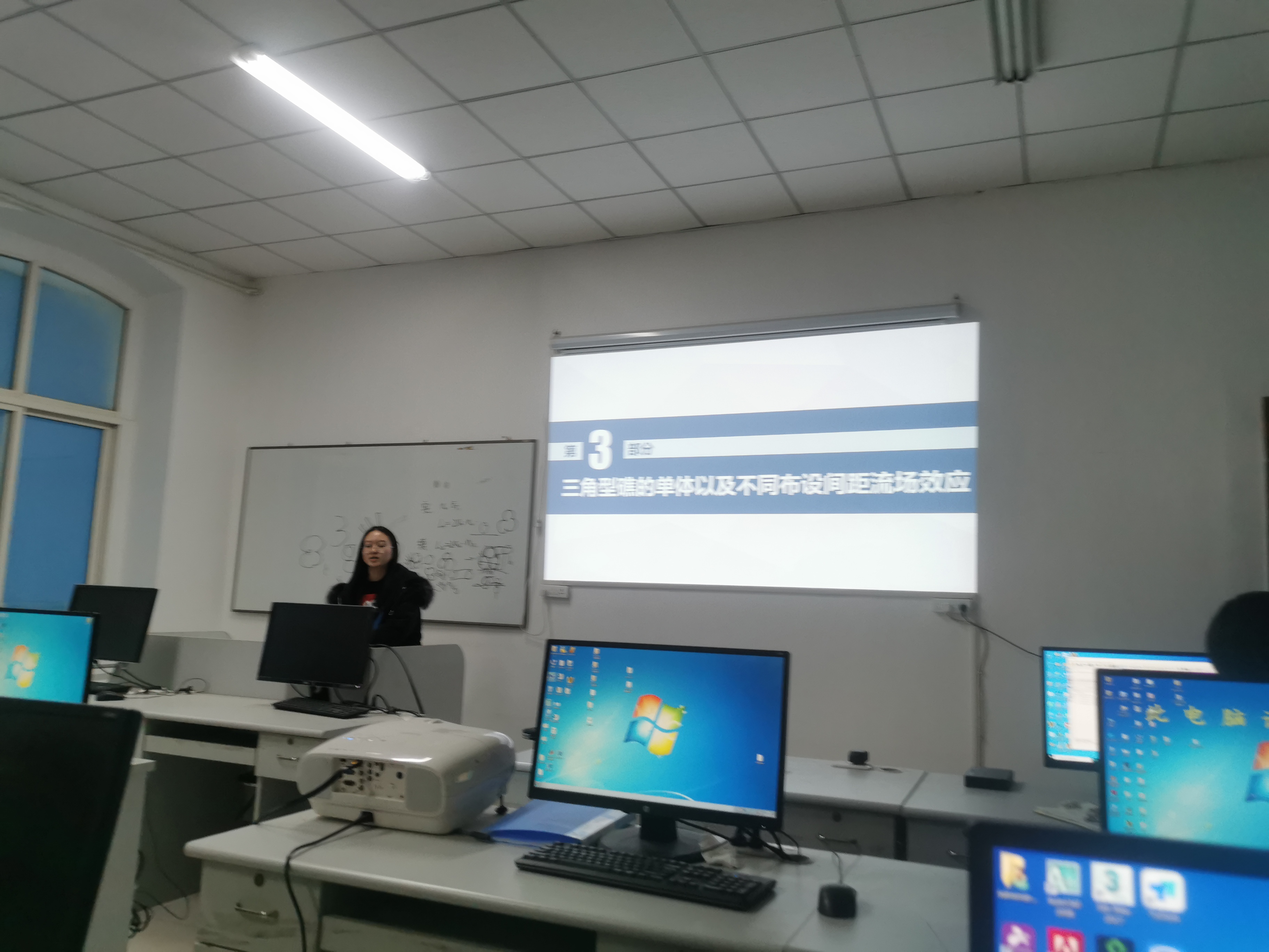 接下来,实验室4位研究生依次进行了工作汇报。朱美玲同学分享了题为“海洋牧场综合选址”的汇报;杨明达同学针对“海底结构物局部冲刷的数值模拟研究”进行了汇报;罗岩同学汇报了“三角型人工鱼礁的结构优化与诱集效果研究”相关研究进展;黄杰鸿介绍了“海洋鱼类中的微塑料污染”相关研究进展。