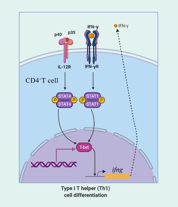 图2.T-bet在CD4+ T细胞IFN-γ分泌和分化为Th1细胞过程中的作用示意图