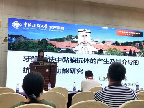 博士生郭媛做了《牙鲆皮肤中黏膜抗体的产生及其介导的抗原排除功能研究》的学术专题报告。