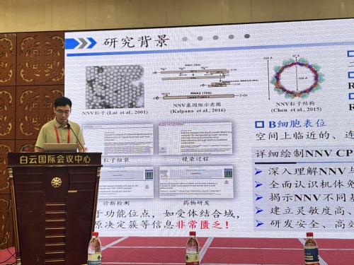 大会以开拓创新、赋能增效、高质量发展为主题采取主题报告与学术专题报告相结合的方式。我实验室邢婧教授做《石斑鱼神经坏死病毒候选疫苗研制及其免疫保护效果研究》的主题报告。