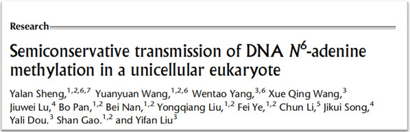 为了进一步研究真核生物6mA是否可以进行稳定的遗传,该团队与南加州大学刘一凡副教授合作,首次从单分子的层面证实了真核生物6mA的遗传方式(半保留遗传),并发现了课题组之前报道的6mA甲基化酶AMT1是参与此过程的维持性甲基化酶。研究成果以“Semiconservative transmission of DNA N6-adenine methylation in a unicellular eukaryote”为题,发表在著名学术期刊Genome Research上。