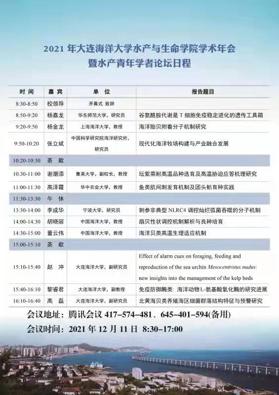 【会议通知】2021年大连海洋大学水产与生命学院学术论坛暨水产青年学者论坛日程