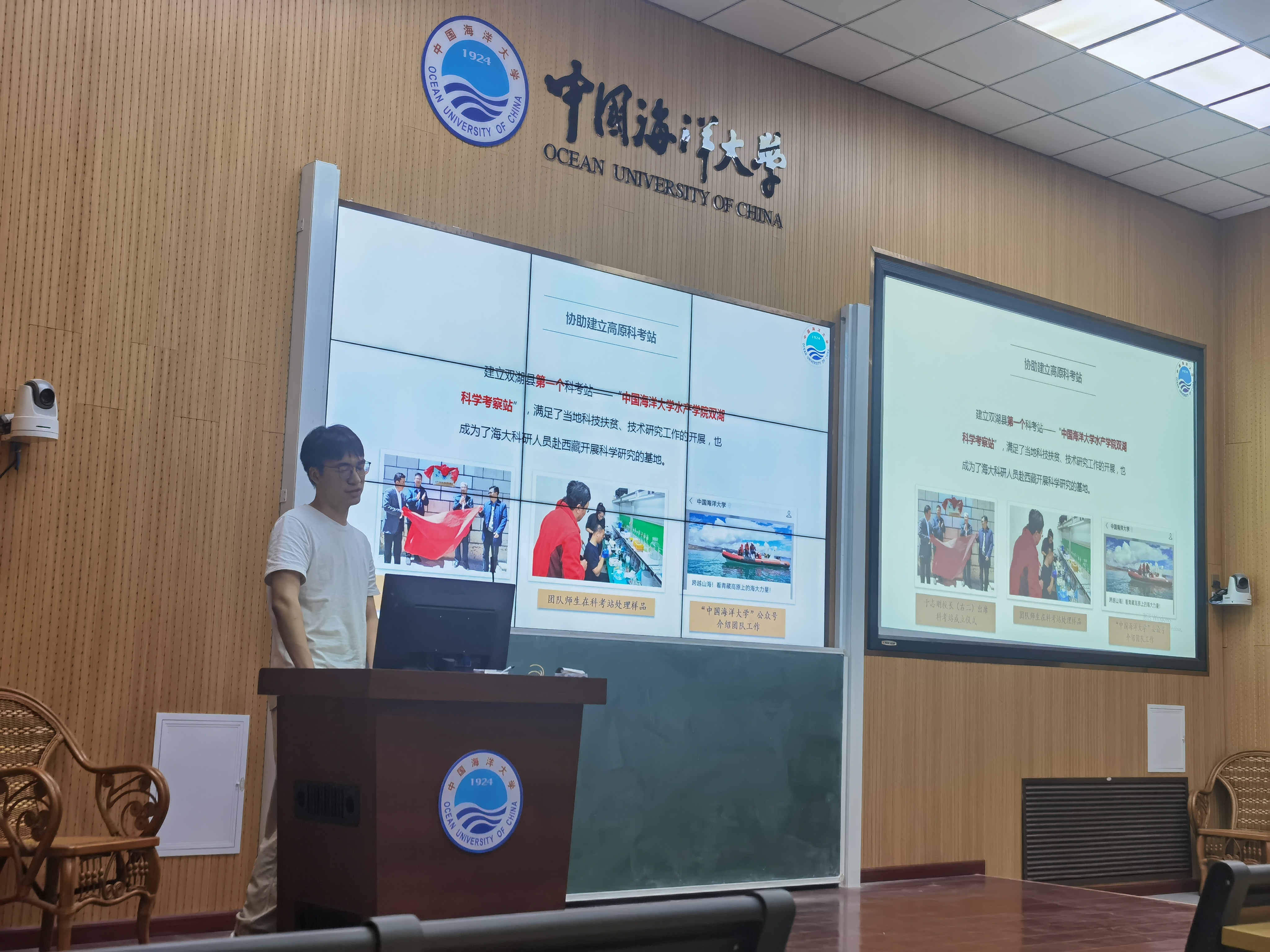 朱柏杉博士与同学们分享了科研援藏的珍贵经历。西藏的壮美风光以及“八赴双湖,七次采样”的科研经历,鼓励着青年团员投身科研,极大的激发起青年团员们对科研的热情,鼓舞更多青年团员投身水产事业与志愿扶贫。