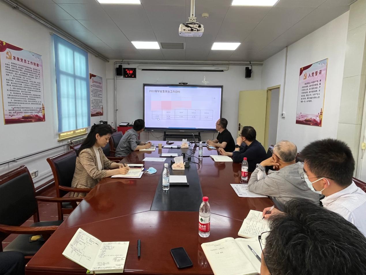 辅导员王世晨介绍了学院2022届毕业生就业工作的总体进展,宣讲了国家关于高校毕业生就业创业工作的有关政策文件,分析了当前面临的形势压力和主要困难。各位研究生导师代表逐一介绍了所带研究生的就业进展,重点分析了暂未落实毕业去向学生所面临的的问题,共同研讨了下一阶段的就业帮扶措施。