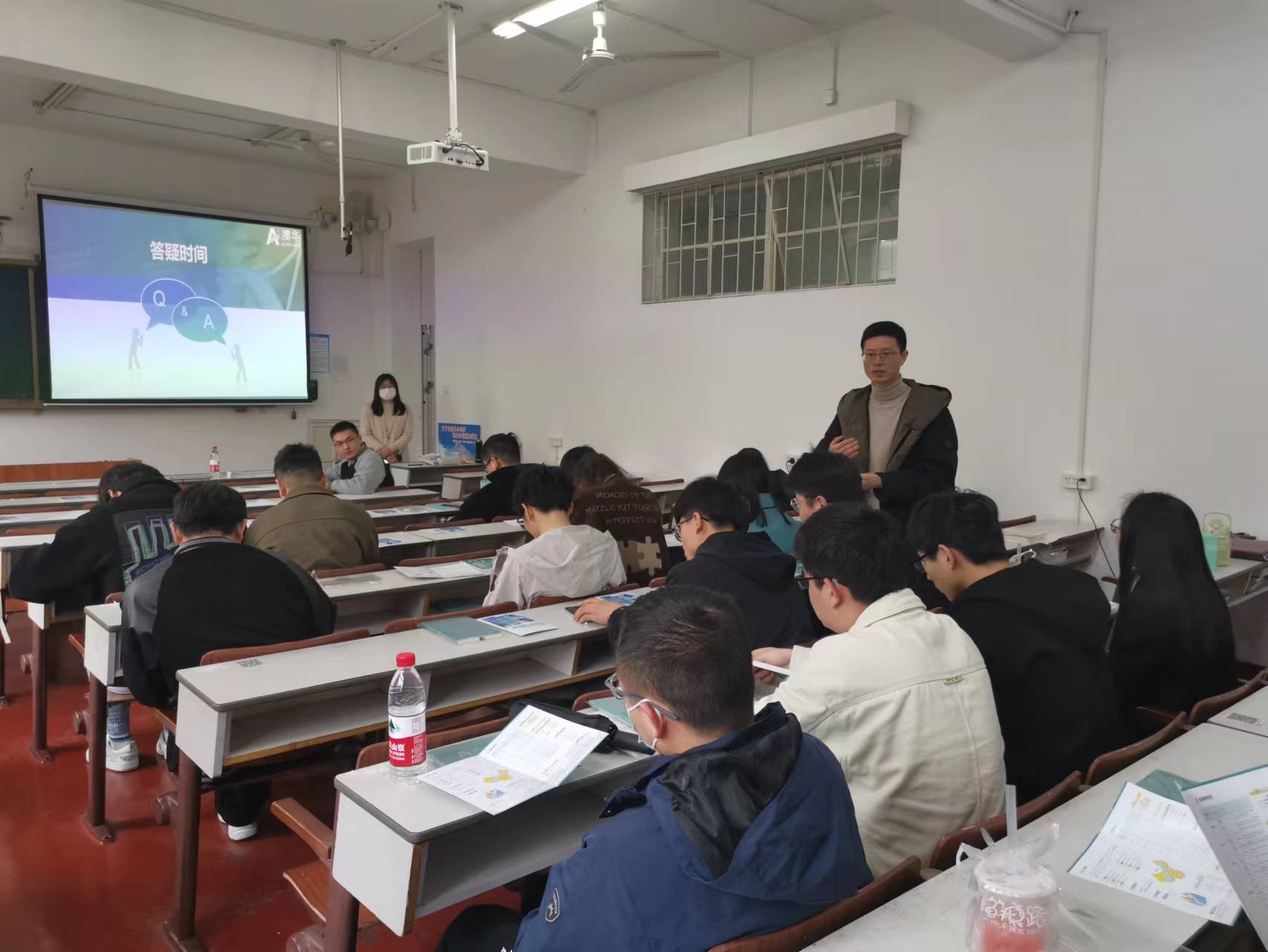 宣讲嘉宾对公司概况、招聘岗位、薪资待遇、晋升发展等学生热切关注的问题做了详细介绍。校友崔坤、王晚生分享了入职后的体验感受,帮助毕业生更加清晰地了解企业文化。宣讲结束后,企业与同学们一对一面试,活动现场气氛热烈,目前已有十余名同学与企业达成签约意向。