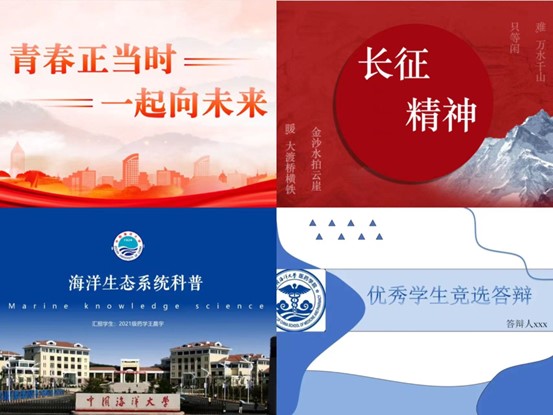 520日到710日期间,中国海洋大学第四届PPT制作大赛初赛作品征集活动在线上展开。经过一个多月的宣传、征集、整理,共收到24份参赛作品。710日到720日期间,PPT大赛初赛在线上展开。经过专业评委打分,共有红色赛道7人、蓝色赛道6人进入决赛;另有红色赛道5人、蓝色赛道6人进入最佳人气奖的线上投票评选。720日下午,决赛在线上如期举行。选手进行PPT展示并答辩,再由评委打分、点评,最终诞生了红色赛道一二三等奖各1名,优秀奖4名,线上投票评选出最佳人气奖1名;蓝色赛道一二三等奖各1名,优秀奖3名,线上投票评选出最佳人气奖1名。