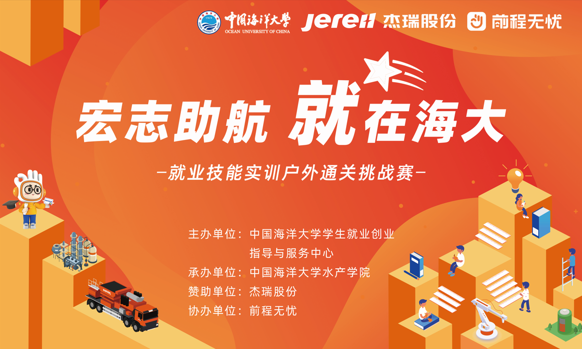 为增强大学生求职能力,提高大学生综合素质,使大学生在求职前能够熟练掌握简历制作技巧、熟悉企业面试流程并提高面试能力,5月27日,中国海洋大学“宏志助航,就在海大”就业技能实训户外通关挑战赛在鱼山校区顺利举办,本次活动由学校就业创业指导与服务中心主办,水产学院承办,杰瑞股份赞助,前程无忧协办。45名同学组成8支队伍参与比赛并角逐出6位优秀选手,他们将参加6月10日在鱼山校区组织的决赛。