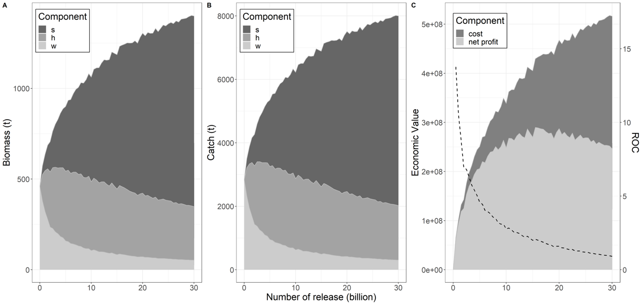 资源增殖(stock enhancement)被认为是资源养护和重建种群的重要方法之一,已广泛应用于世界范围内的渔业中。与此同时,其广泛应用也引起了对其负面影响的关注,例如野生种群被取代、遗传多样性下降等问题,亟需对增殖战略进行科学评估和规划。种群动力学模型对于增殖渔业的评估与管理具有重要意义,然而由于缺乏对动力学机制过程,尤其是密度制约效应的理解,可能导致模型预测能力的限制。