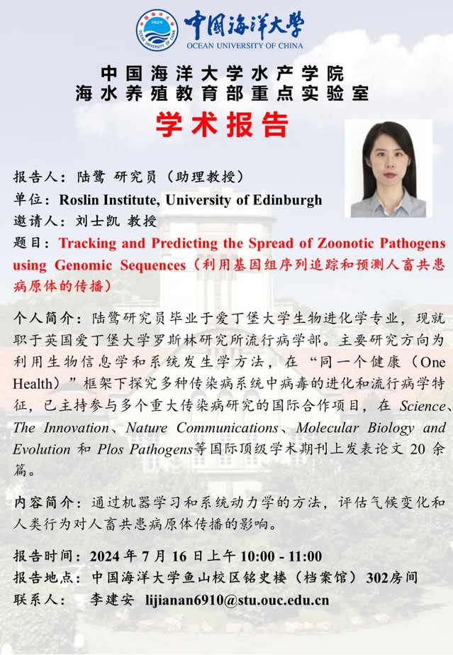 【学术报告】Tracking and Predicting the Spread of Zoonotic Pathogensusing Genomic Sequences(利用基因组序列追踪和预测人畜共患病原体的传播)
