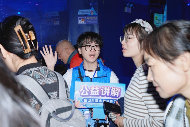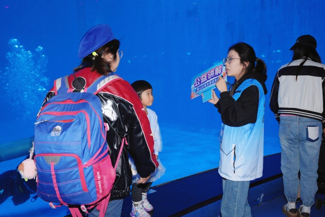 在海洋生物科普活动现场,鱼山科普志愿者协会的志愿者们热情地向游客们介绍着神奇的海洋生物们。他们先后带领游客们来到了海豚表演区、白鲸展区、海狮展区和企鹅展区,详细讲解了这些海洋生物的生理结构、生活习性以及与人类的关系。从海豚的分布范围、到白鲸高超的口技能力,再到企鹅在极地环境中的生存策略,游客们听得津津有味,对这些海洋生物产生了浓厚的兴趣,纷纷驻足观看,拍照留念。