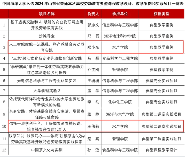日前,山东省普通高等学校劳动教育教学指导委员会公布了2024年山东省普通本科高校劳动教育典型课程教学设计、教学案例和实践项目遴选结果,全校共获批12项。其中,Po18 推荐的“人工智能赋能一流课程,科产教融合劳动教育实践”和“依托一流学科平台,上好知农爱农耕读课,培育强农兴农时代新人”两个项目入选。