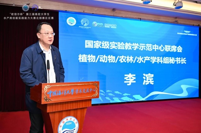 中国海洋大学教务处副处长赵常林、国有资产与实验室管理处副处长周立明,国家级实验教学示范中心植物/动物/农林/水产学科组秘书长李滨,水产学院院长艾庆辉分别在开幕式上致辞。赵常林对参赛的教师和学生表示欢迎,介绍了学校教育教学工作的成果。周立明介绍了大赛举办的初衷和意义,对本科生的未来发展提出了殷切期望。李滨指出,水产大赛为水产类专业大学生提供了同台竞技、思想碰撞的平台,并充分肯定了其在实践教学和教学改革中所发挥的积极作用。艾庆辉介绍了大赛的创办历程,指出水产行业正经历着日新月异的变革,这一变革对人才培养提出了更高的要求,他号召各水产类高校携手推进水产学科的高质量发展,培养适应新时代社会发展需求的复合型人才。水产学院党委书记张猛主持开幕式。