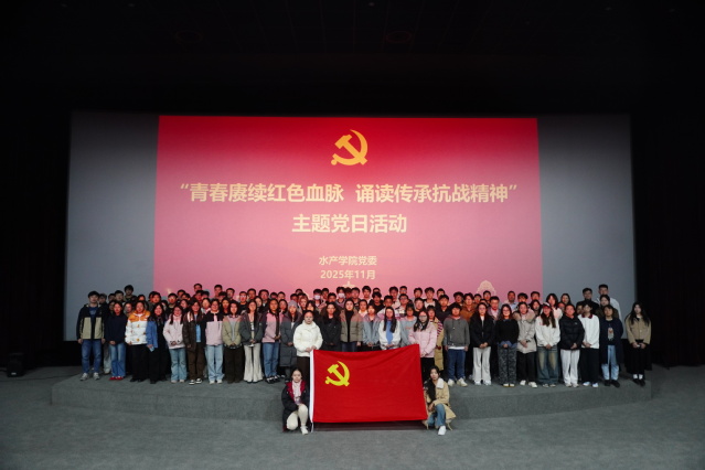 为深入开展爱国主义教育,弘扬伟大抗战精神,11月20日,水产学院党委开展“青春赓续红色血脉·诵读传承抗战精神”主题党日活动。组织入党积极分子、新发展党员及师生党员共130余人,通过“沉浸观影+情景诵读+党课互动+真情感悟”多元联动,打造立体化、沉浸式的红色铸魂思政课,引导师生深切缅怀革命先烈,赓续红色血脉,进一步夯实理想信念根基,激发爱党爱国的深厚情感与奋进力量。