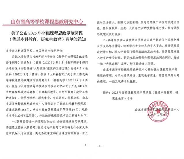 近日,山东省高等学校课程思政研究中心公布2025年省级课程思政示范课程(普通本科教育、研究生教育)名单,中国海洋大学水产学院本科生课程“贝类增养殖学”和研究生课程“现代水生动物营养与饲料学”成功入选,截至目前,学院累计有5门课程入选省级课程思政示范课。