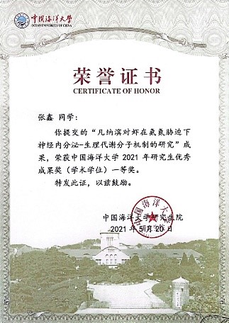 近日,2021年中国海洋大学研究生教育创新计划奖项评选揭晓,共评选出优秀博士学位论文30篇、优秀硕士学位论文55篇,研究室2020届硕士毕业生韦存、刘力铷荣获中国海洋大学第二十一届优秀硕士学位论文奖(已公示);研究室张鑫博士荣获研究生优秀成果奖一等奖,张梦宇博士和杨莹莹硕士荣获研究生优秀成果奖二等奖,并均获推荐山东省优秀研究生学位论文和优秀成果奖评选!