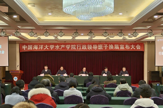会上,王雪鹏宣读了学校党委关于水产学院新一届行政领导班子的任职等决定。艾庆辉为水产学院院长,王伟莉、高勤峰、万敏、刘阳为副院长。