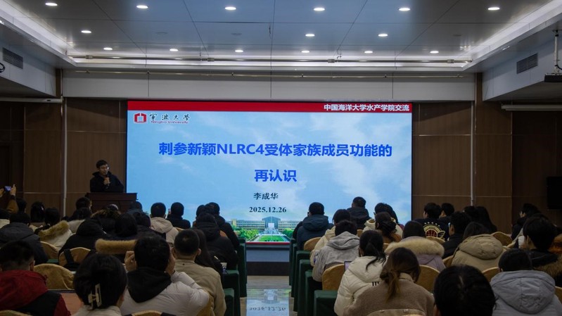 12月26日,水产学院重点打造的学术品牌“牧海人”论坛在鱼山校区学术交流中心顺利举办。本期论坛由水产学院和农业农村部水产动物营养与饲料重点实验室联合主办,紧扣国家“蓝色粮仓”建设战略与水产养殖绿色发展核心需求,旨在搭建跨研究方向的学术交流与互鉴平台,培育“前沿引领、交叉融合”的创新生态,提升我院研究生的人才培养质量。本期论坛特邀嘉宾是宁波大学李成华研究员和厦门大学刘海鹏教授。学院党委书记张猛、院长艾庆辉出席论坛,副院长刘阳、万敏和高勤峰主持论坛,学院教师和研究生130余人参加本次论坛。