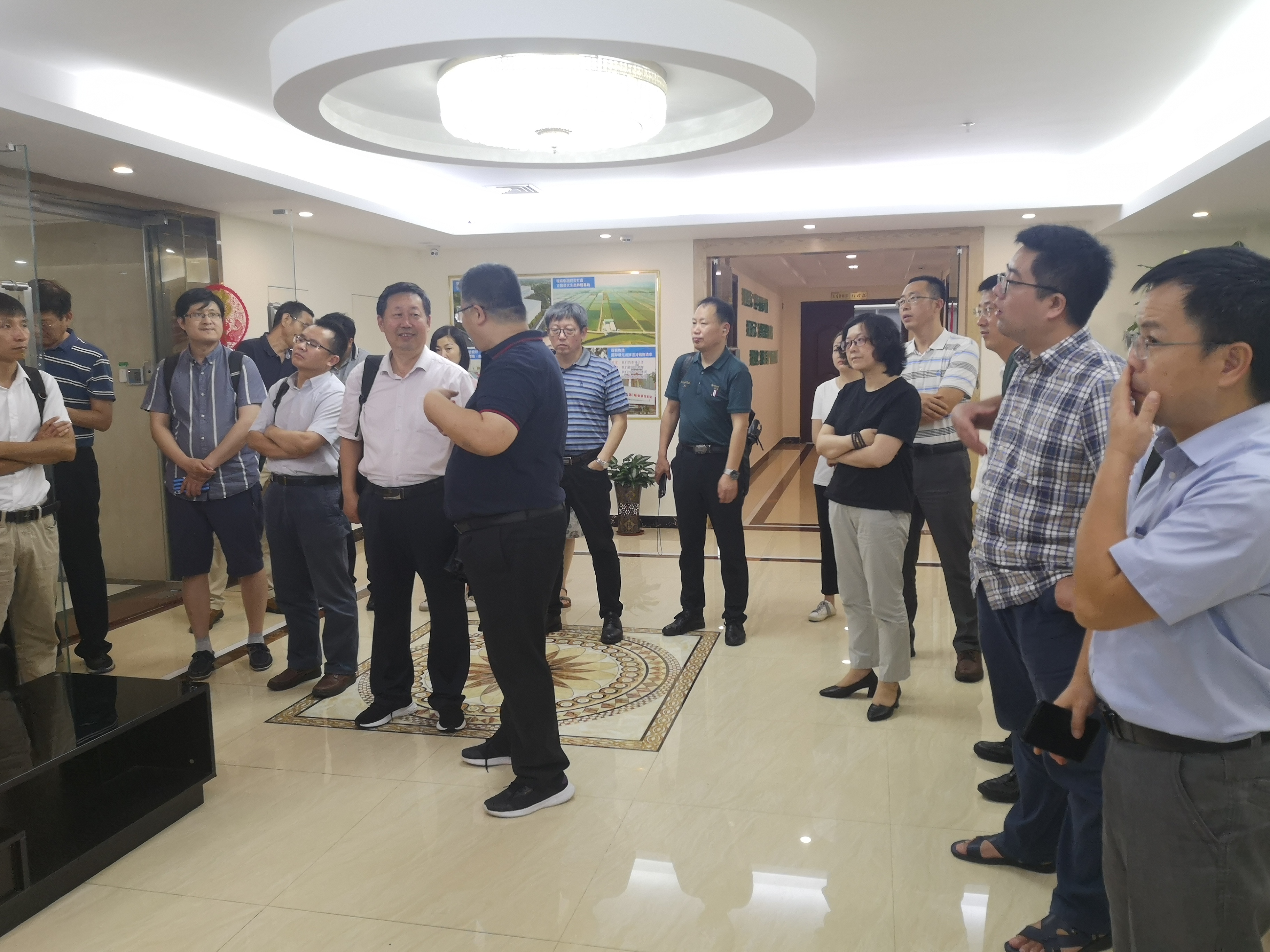 图3 与会人员考察广东强竞农业集团总部 考察的第三站是广东粤海饲料集团旗下的海鲈养殖基地(珠海斗门区),该基地拥有池塘养殖面积3800余亩,主要养殖海鲈,具有良好的生产、试验、技术推广等条件,与大学和研究所合作研发项目较多。