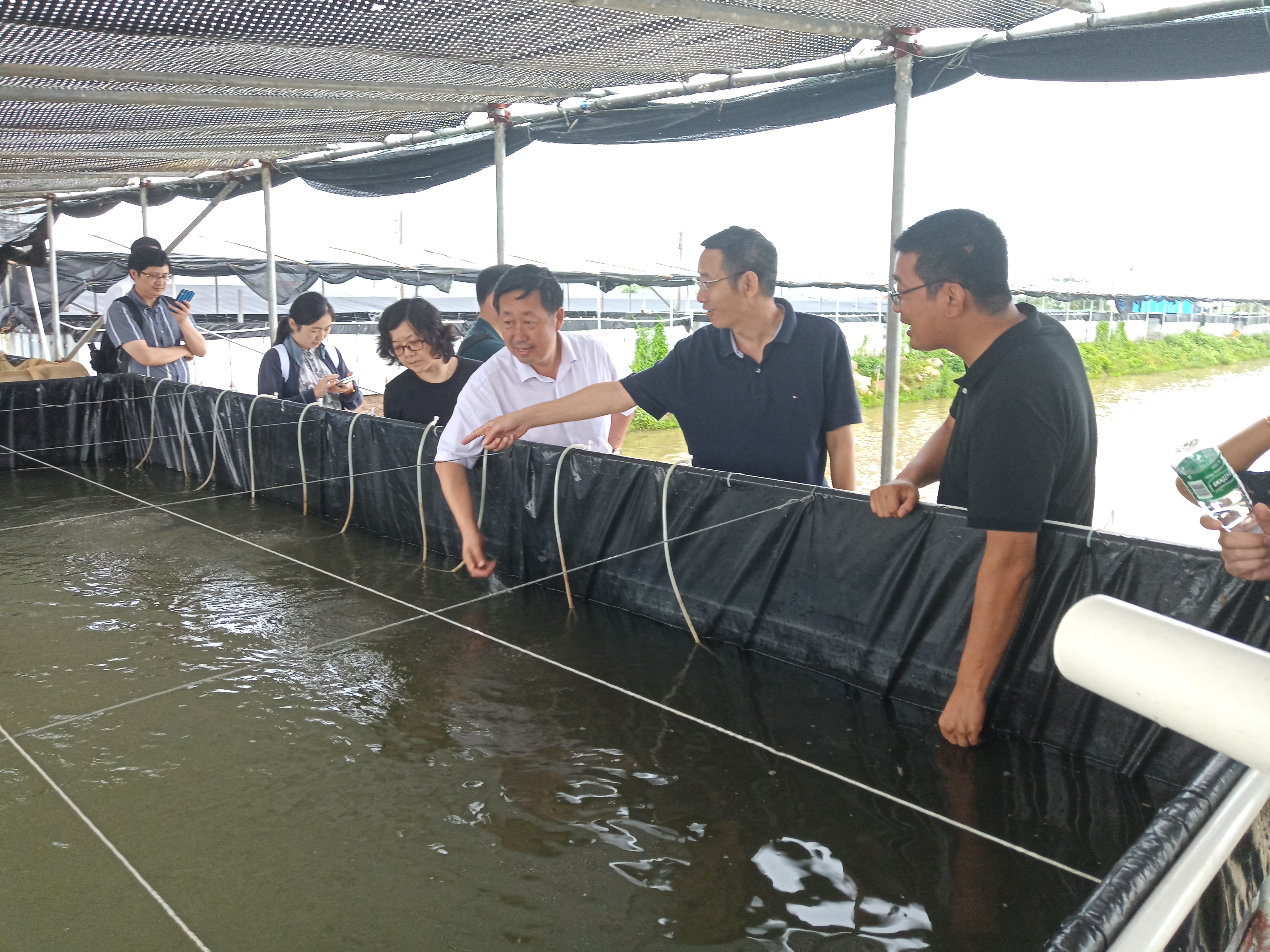 图1 全体参会人员合影 会后,带着问题,全体专家和企业技术人员共同调研了3家海鲈全产业链相关的企业。考察的第一站是珠海市斗门区河口渔业研究所,该所位于鹤洲北垦区内,2011年8月注册成立,目前隶属于珠海市斗门生态农业园管委会,与众多科研院所和高校保持深入科研项目合作,又拥有设施完备的基地条件,与当地行业企业开展了广泛的生产合作与试点推广。专家们考察了实验室、循环水养殖车间及池塘工程化设施等。