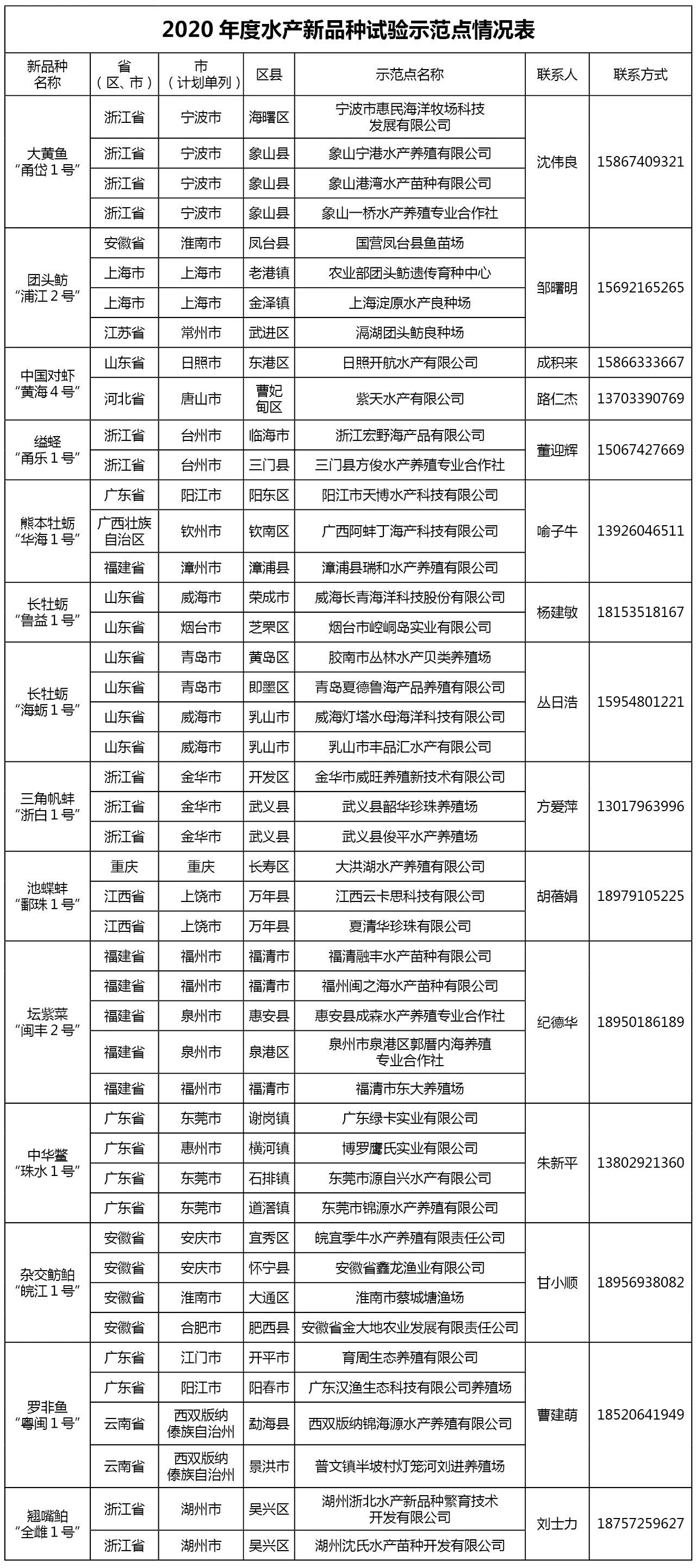 近日,农业农村部发布第324号公告,公布14个经全国水产原种和良种审定委员会审定通过的水产新品种(新品种简介见附件2)。为配合公告后水产新品种的试验示范推广应用,年初,全国水产技术推广总站以《水产绿色健康养殖“五大行动”》之水产种业质量提升行动为抓手,联合各地水产技术推广机构、相关科研教育单位及新型经营主体,组织开展14个水产新品种的试验示范推广工作,在全国12个省(区、市)35个区县建立试验示范推广点46个(见附件1),目前各项工作进展顺利。 下一步,全国水产技术推广总站将按照水产新品种试验示范推广方案,指导各地做好养殖试验管理和示范推广结果评价,形成良种良法配套关键技术规程,并推荐育种单位及扩繁育苗单位入驻“优苗网”,逐步建立“线上线下”相结合的水产新品种推广新模式,有力推进我国水产种业质量进一步提升。 附件1 2020年度水产新品种试验示范点情况表