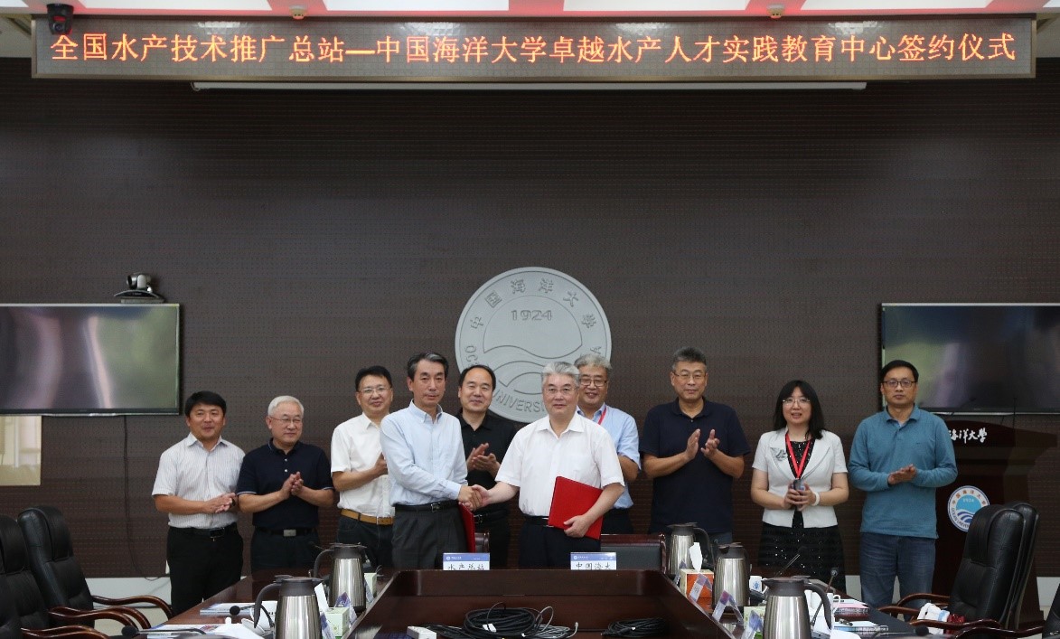 作为中国新农科水产联盟成立启动大会的主要内容之一,9月26日下午,全国水产技术推广总站—中国海洋大学卓越水产人才实践教育中心签约仪式在中国海洋大学崂山校区举行。全国水产技术推广总站(以下简称“水产总站”)站长崔利锋和中国海洋大学校长于志刚出席签约仪式,并分别代表双方签署合作协议。