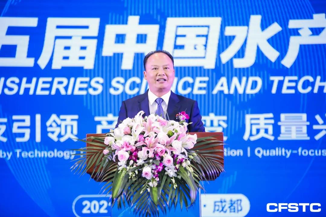本次大会由农业农村部渔业渔政管理局、全国水产技术推广总站、中国水产学会、中国饲料工业协会、中国林牧渔业经济学会、中国水产科学研究院、中国水产流通与加工协会、四川省农业农村厅指导,中国渔业协会主办,中国农牧品牌研究院、通威股份、《水产前沿》杂志联合主办,联合国粮食与农业组织、亚太水产养殖中心网特别支持,四川省水产局、四川省水产技术推广总站、四川省水产学会、国际绿色经济协会绿色水产联盟、集美大学、四川农业大学、华南农业大学、西南大学、安徽省水产技术推广总站、江苏省渔业技术推广中心、重庆市渔业技术推广总站、四川省水产学校、成都市水产行业协会、成都市农林科学院协办。 大会开幕,农业农村部原常务副部长、乡村振兴咨询委员会委员尹成杰,十一届全国政协常委、全国人大代表、中国饲料工业协会常务副会长、通威集团董事局主席刘汉元,中国科学院院士、北京大学生命科学学院教授朱作言,全国水产技术推广总站站长、中国水产学会秘书长崔利锋,中国渔业协会会长、农业农村部渔业渔政管理局原局长赵兴武、四川省农业农村厅副厅长薛学深等领导、院士先后为大会致开幕辞。